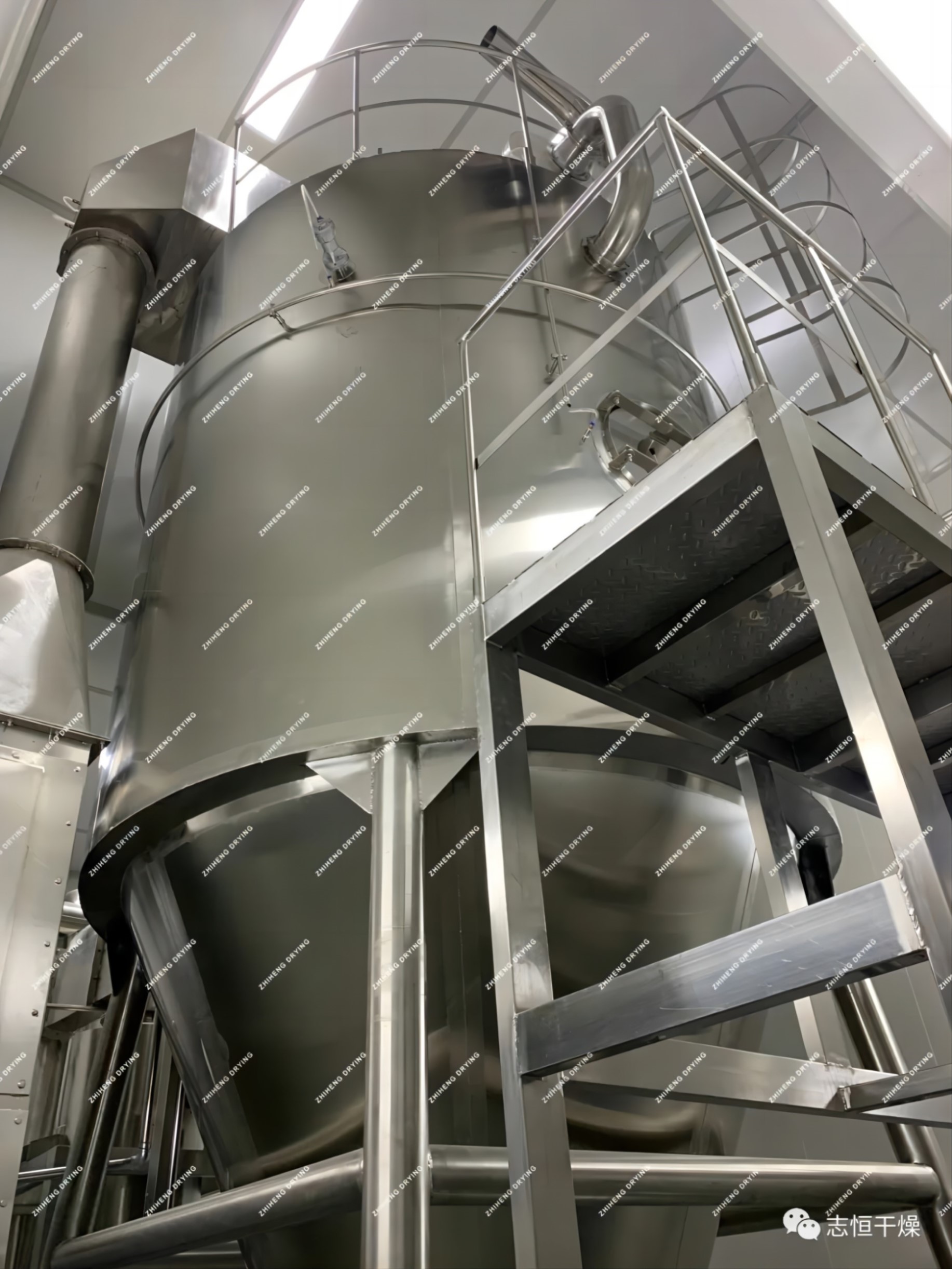 對微膠囊在傳統(tǒng)干燥工藝中存在的問題,志恒針對食品行業(yè)經(jīng)過改良研發(fā)的新型噴霧干燥機(jī),專門針對具有熱敏性強(qiáng)、干燥性差、軟化點(diǎn)低、吸濕性強(qiáng)等特點(diǎn)的物料改良開發(fā)的一款新型噴霧干燥機(jī)。作為溶劑蒸氣含量干燥生產(chǎn)中較為理想的新選擇。干燥室內(nèi)壁和塔頂設(shè)計(jì)為空氣冷卻夾套形式,可以降低內(nèi)壁的溫度,避免物料因接觸高溫壁面而焦化變質(zhì);該設(shè)備所有進(jìn)氣節(jié)點(diǎn)空氣采用H13過濾等級,符合GMP生產(chǎn)要求。