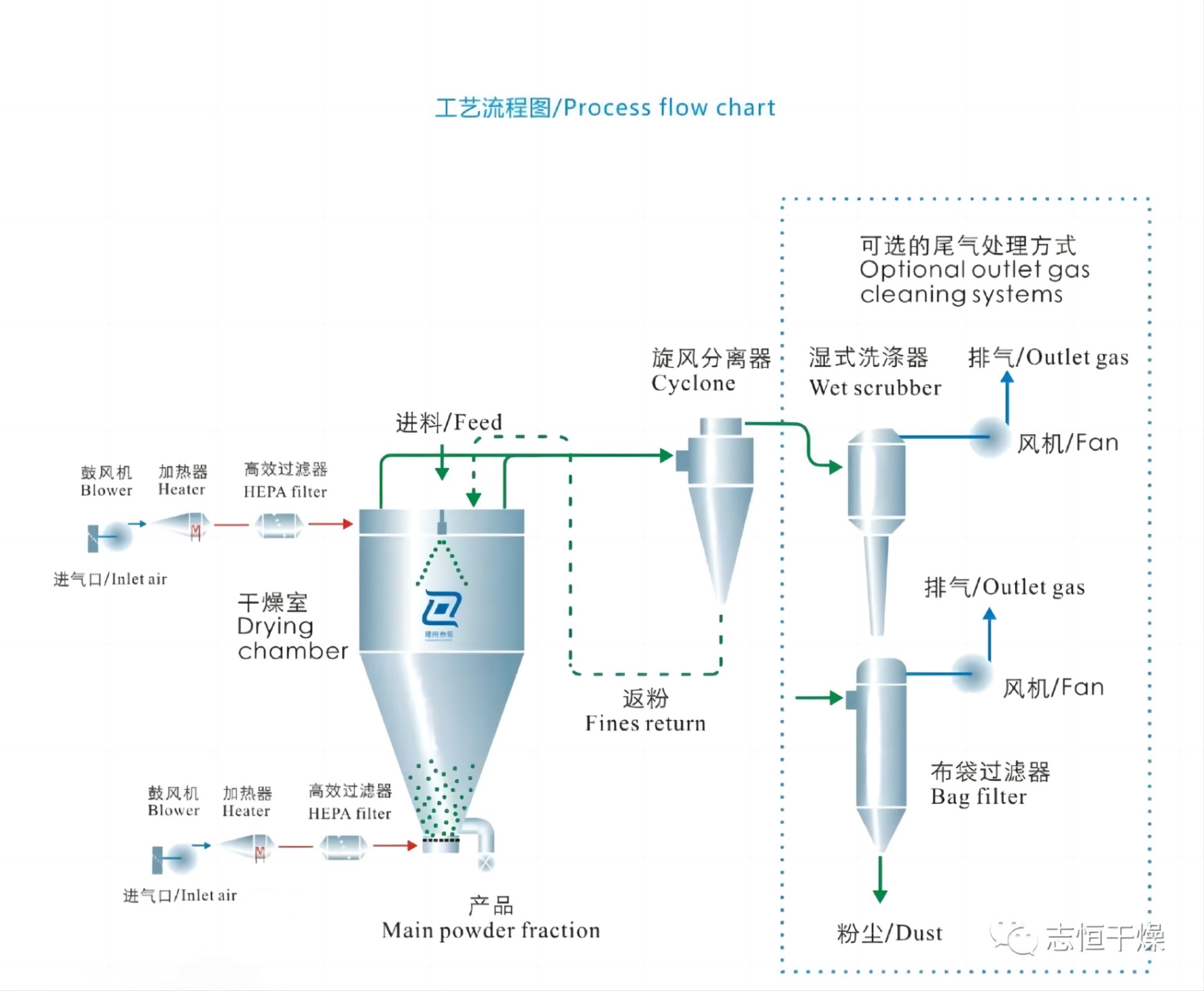 公司擁有國際先進(jìn)的實(shí)驗(yàn)中心,致力于將客戶產(chǎn)品的生產(chǎn)工藝與設(shè)備制造加工、工業(yè)自動化控制相結(jié)合。為客戶提供適合自己生產(chǎn)工藝的干燥解決方案。