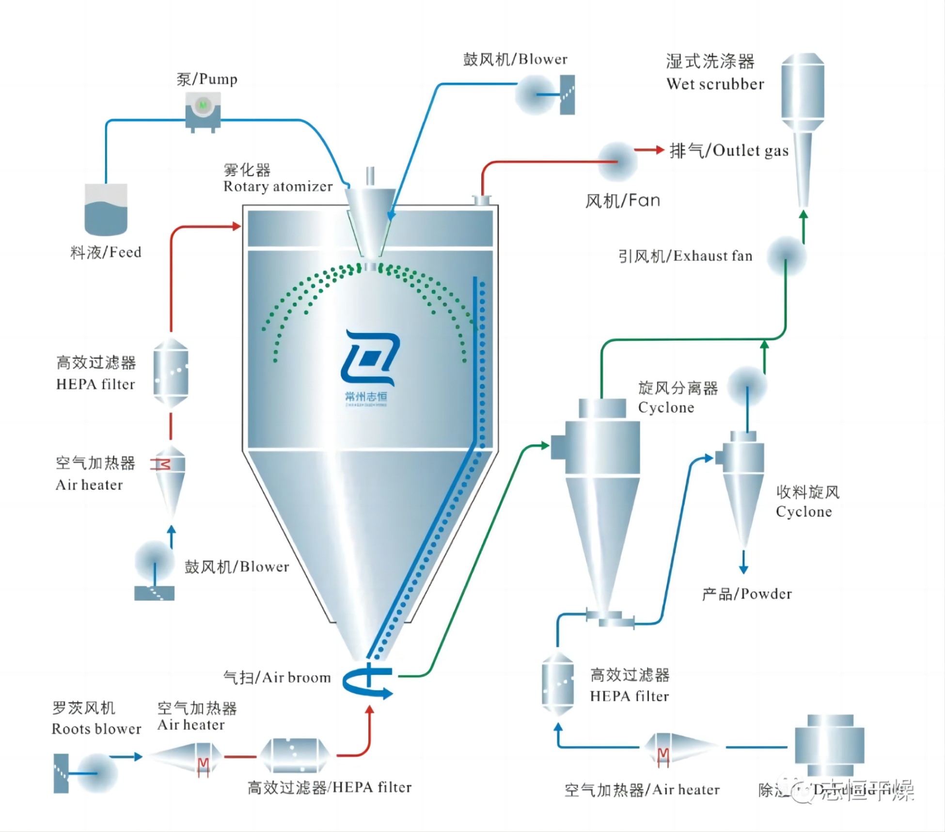 食品專用噴霧干燥機(jī)流程圖