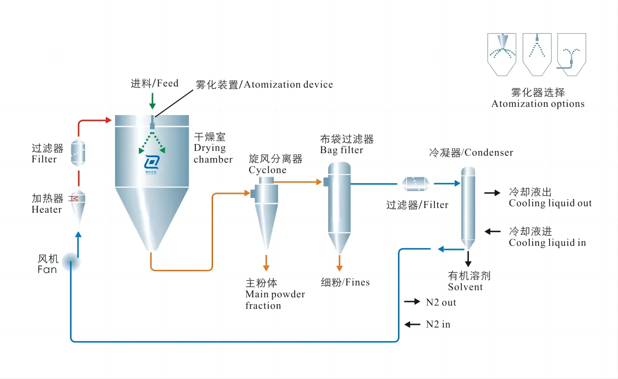 GLP-1的熱敏性高,需要更低的溫度來(lái)干燥。針對(duì)該特點(diǎn),我們的設(shè)備可以將進(jìn)風(fēng)溫度控制在100℃左右,實(shí)現(xiàn)GLP-1從液體到粉體的干燥。